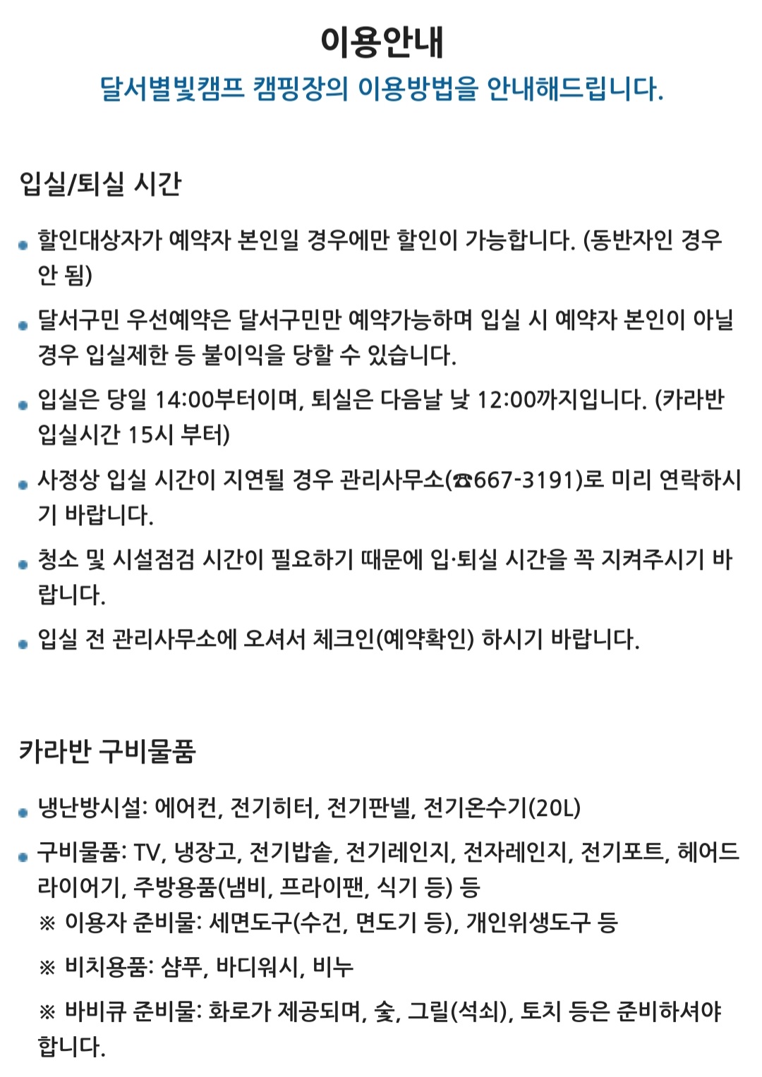 <달서별볓캠핑장 기타 이용안내>