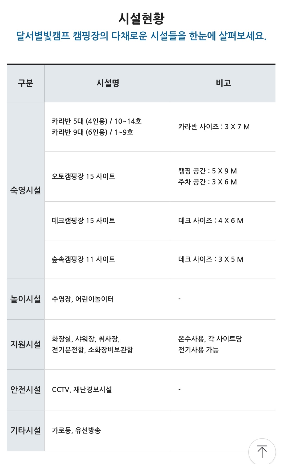 <달서별볓캠핑장 시설현황>