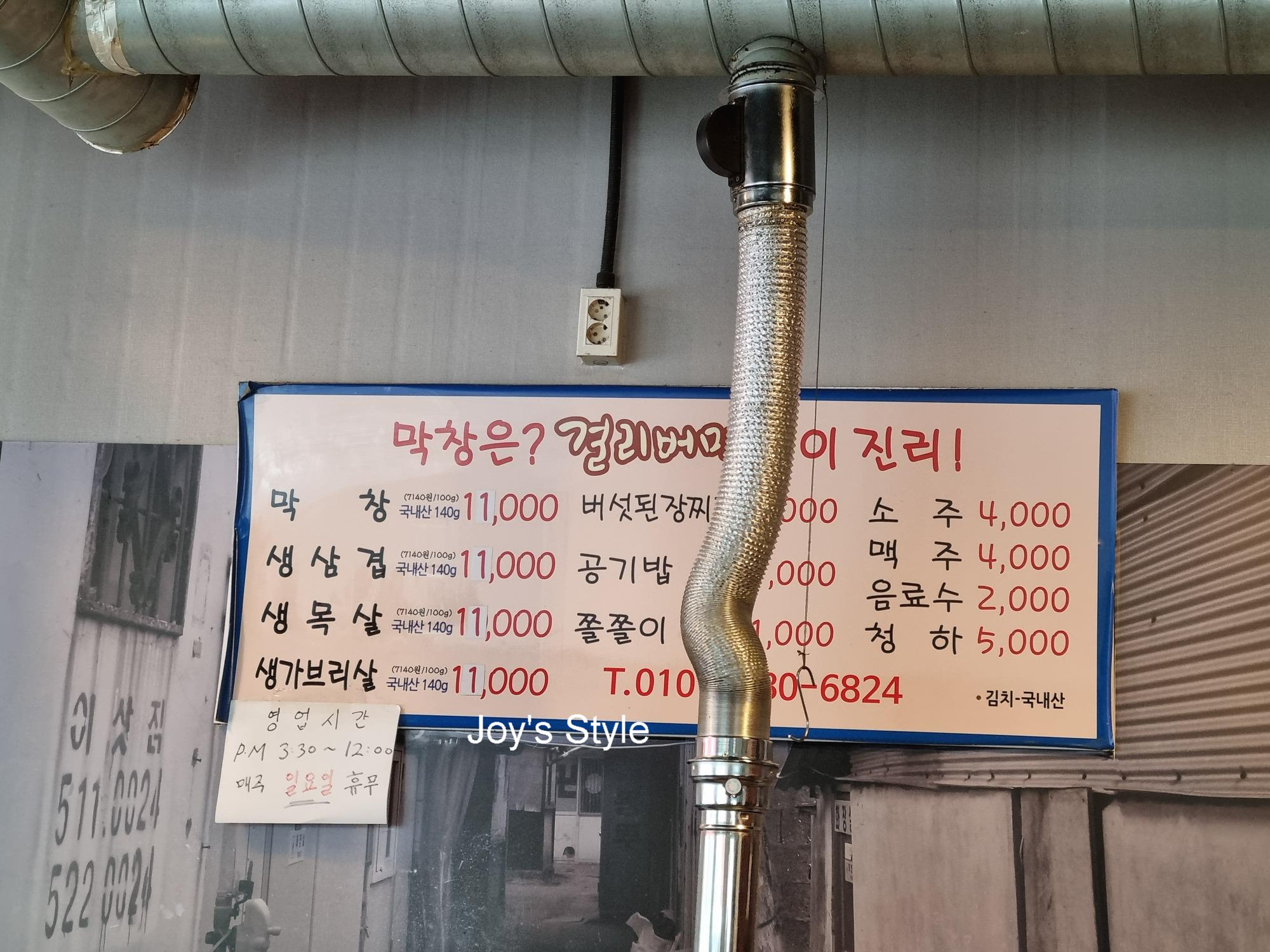 걸리버 막창 메뉴판.