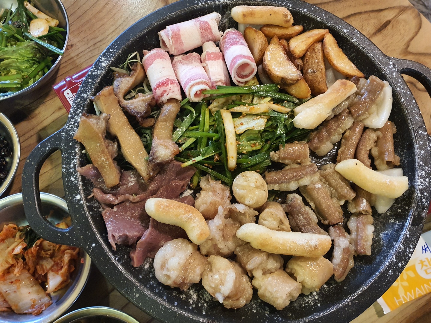 곱창, 막창, 대창, 대패삼겹살, 떡, 감자, 부추 등등