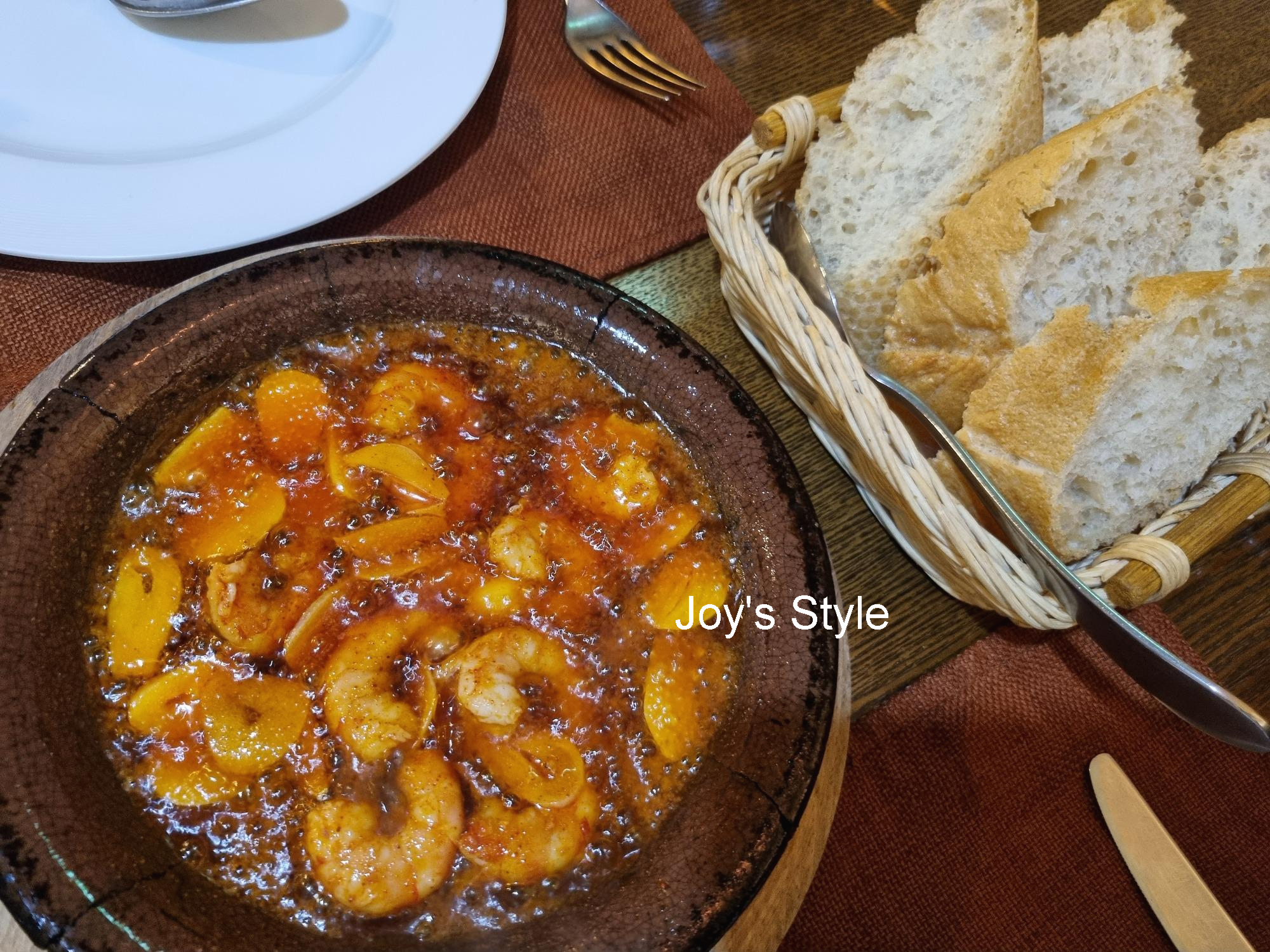 곧이어 감바스와 바게트 빵이 나왔다.