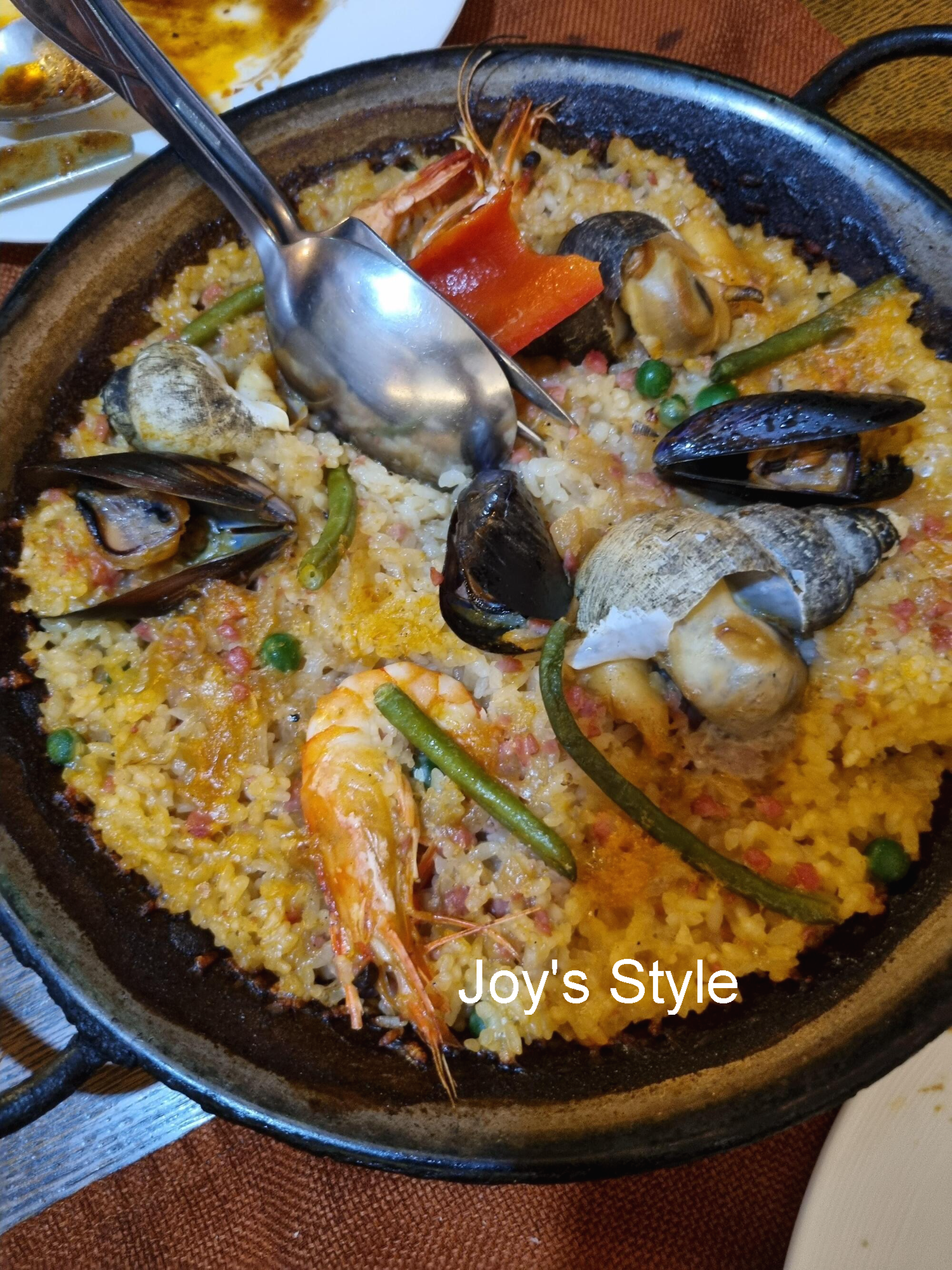 지중해식 스프 + 감바스&빵 + 닭고기 요리 + 빠에야 + 후식